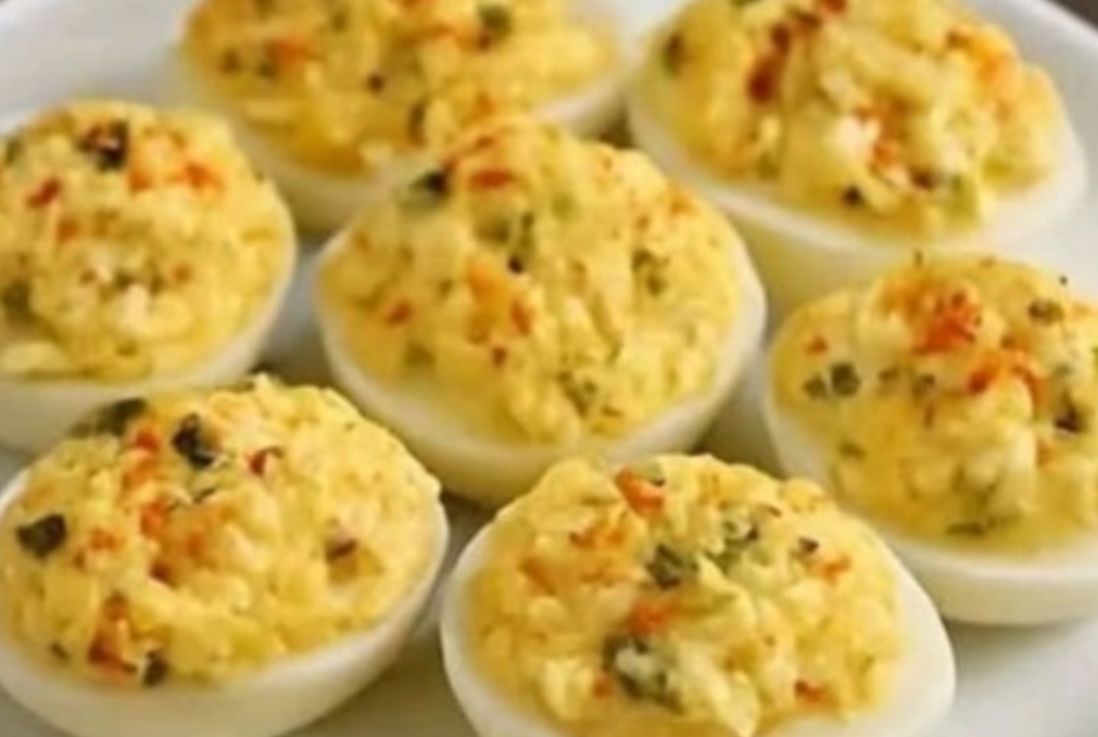 Spoon or pipe the yolk mixture into the hollowed egg whites.