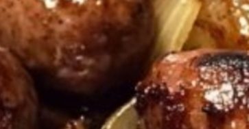 Oven Braised Beer Brats with Caramelized Onions and Apples