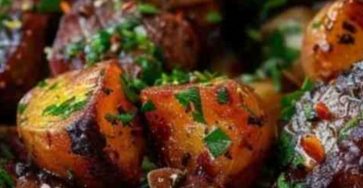 Ingredients: – 1 lb sirloin steak, cut into 1-inch cubes– 1 lb baby potatoes, quartered– 3 tablespoons olive oil, divided–…