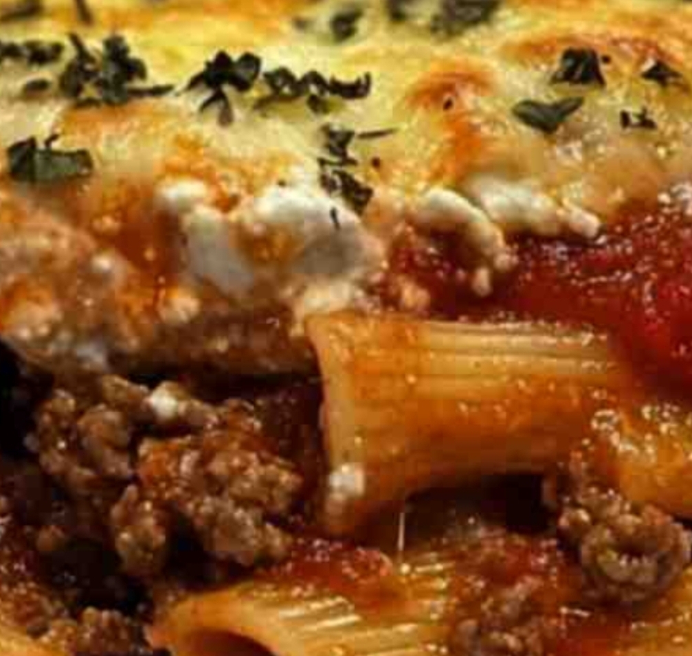 Ingredients:•1 pound ziti pasta•1 pound ground beef•2 cups marinara sauce•1 cup ricotta cheese•2 cups shredded mozzarella cheese•1/2 cup grated Parmesan cheese•2 cloves garlic, minced•1 teaspoon Italian seasoning•Salt and pepper to taste•Fresh parsley (optional, for garnish)Instructions:1.Cook the Pasta•Boil a large pot of salted water and cook the ziti pasta according to the package instructions until al dente.•Drain and set aside.2.Prepare the Meat Sauce•In a large skillet, brown the ground beef over medium heat.•Add the minced garlic and cook for 1-2 minutes until fragrant.•Stir in the marinara sauce, Italian seasoning, salt, and pepper. Simmer for 5-7 minutes.3.Preheat the Oven•Preheat your oven to 375°F (190°C).4.Assemble the Ziti•In a large mixing bowl, combine the cooked ziti pasta with half of the meat sauce.•Spread half of the ziti mixture into a greased 9×13-inch baking dish.•Dollop ricotta cheese evenly over the layer of ziti.•Add the remaining meat sauce on top, spreading it evenly.•Sprinkle shredded mozzarella and Parmesan cheese over the top.5.Bake•Cover the baking dish with aluminum foil and bake for 20 minutes.•Remove the foil and bake for an additional 10-15 minutes, or until the cheese is bubbly and golden.6.Serve•Let the baked ziti cool for 5 minutes. Garnish with fresh parsley, if desired, and serve warm.Enjoy this comforting and cheesy baked ziti dish! Perfect for family dinners or gatherings.Enjoy!