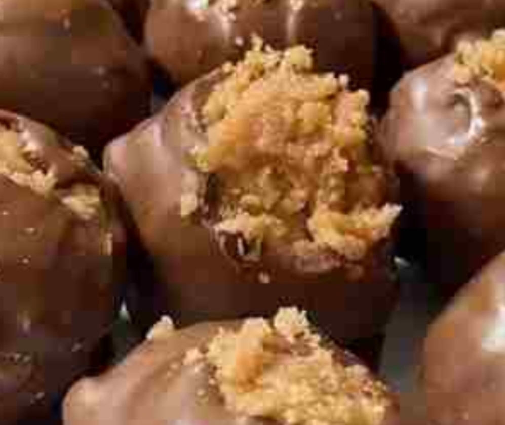 Indulge in your Butterfinger Bliss Balls just after the chocolate has solidified, the grand finale.