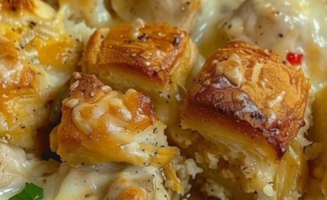 Imagine cloud-soft biscuits bursting through golden chicken silk, cradling bacon confetti—the kind that makes your spoon pause mid-scoop while you whisper, “Mama Elara, you witch of the hollow.” My Mama Elara baked this in her 1932 Ozark cabin after the bank took our land, using up Depression-era biscuit scraps to feed hungry moonshiners. For 92 years, it’s been the star of every harvest moon, snowed-in Sunday, and “the world’s on fire but this pan is perfect” moment. When you tear through that crust, you’re not just eating dinner—you’re tasting the grit of a woman who fed 12 children on a sharecropper’s wage.