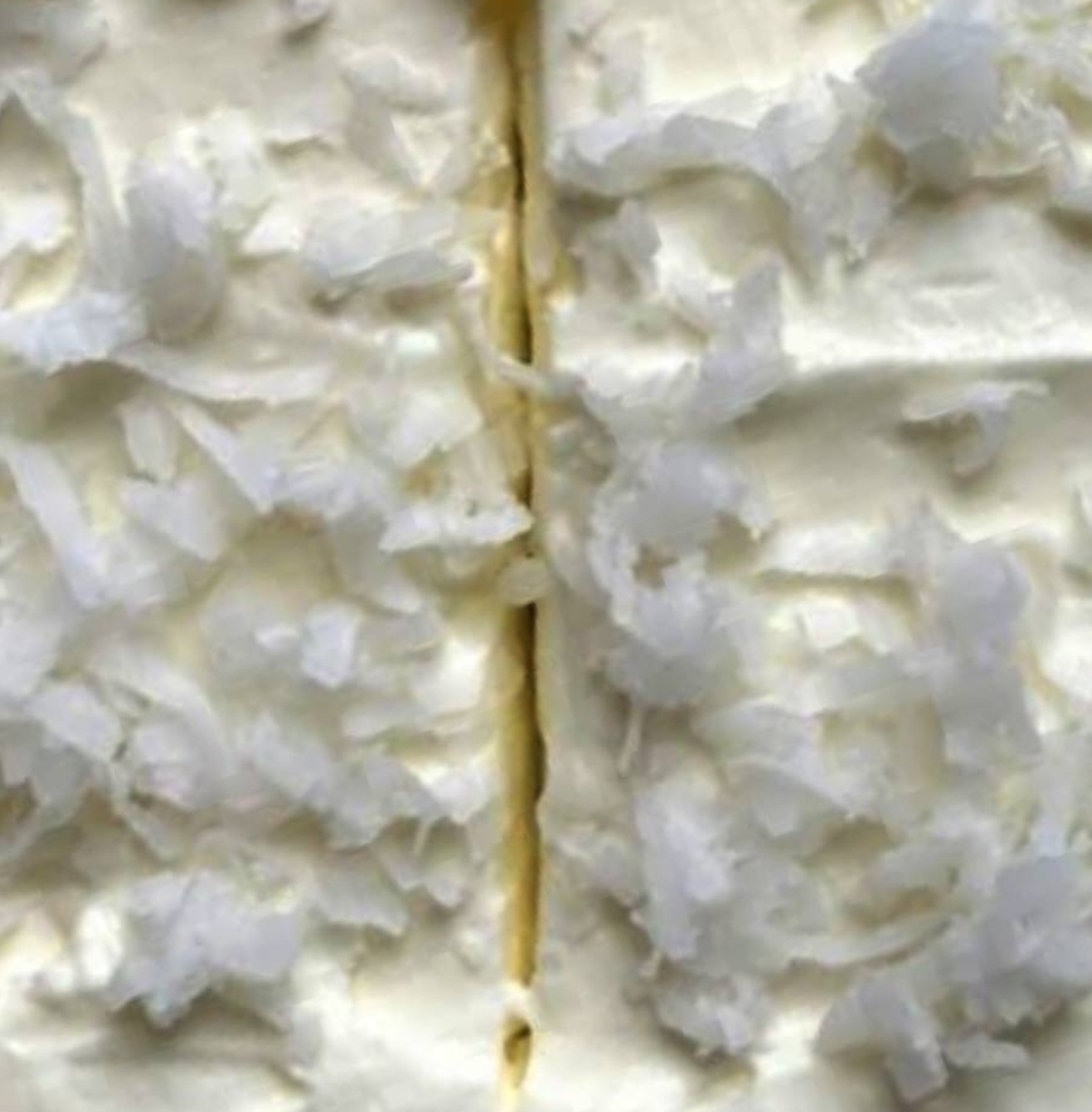 Spread the whipped topping over the cooled cake and sprinkle shredded coconut.