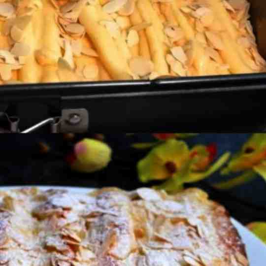 – Sprinkle the sliced almonds evenly over the top of the batter.