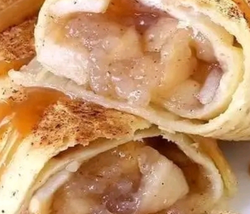 - Mix apple pie filling with cinnamon in a bowl. Divide mixture evenly among tortillas, spooning it along the center of each.