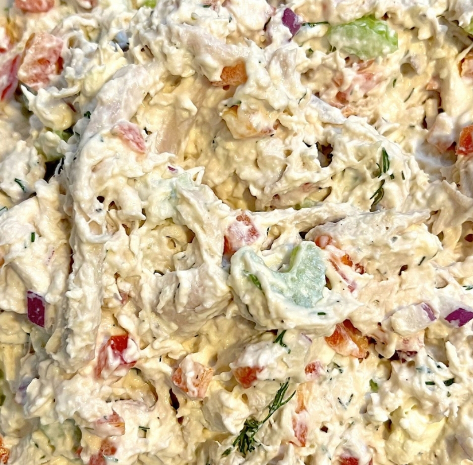 Prepare the Dressing: In a separate small bowl, combine the mayonnaise, feta crumbles, dried dill, dried oregano, garlic powder, black pepper, and salt. Mix thoroughly until the dressing is smooth and well combined.