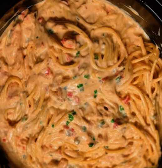 Combine: Add the cooked pasta to the slow cooker. Stir well to ensure each strand or piece is beautifully coated in the creamy sauce.
