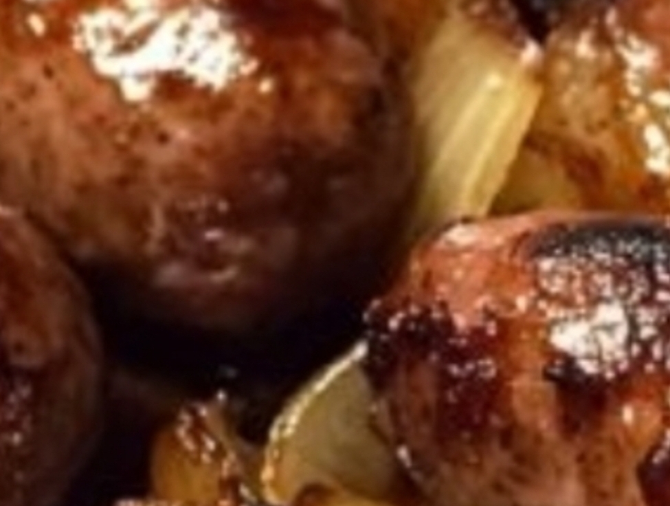 Oven Braised Beer Brats with Caramelized Onions and Apples