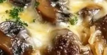 Cheesy Mushroom Beef & Rice Bake