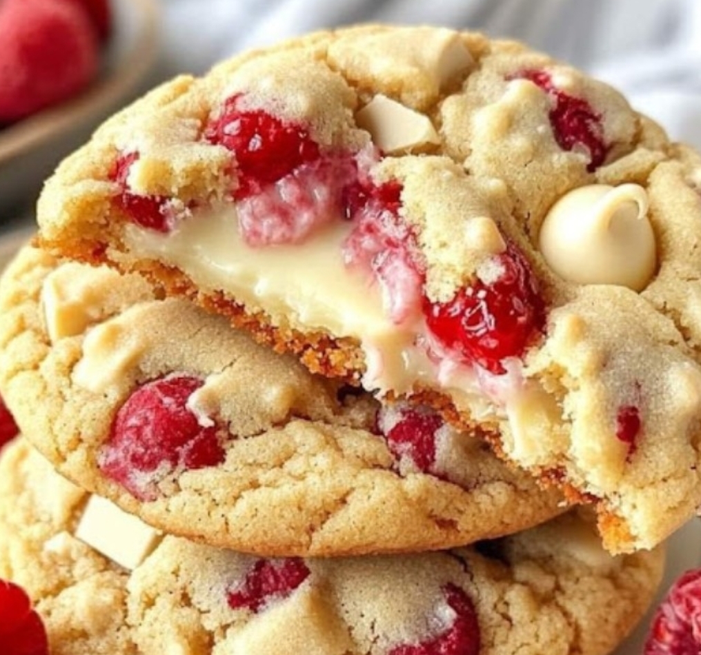 The contrast of flavors and textures makes these cookies an irresistible treat. Perfect for special occasions, holiday baking, or simply as an indulgent snack, these cookies bring together the best of both sweet and tart in every bite. The addition of white chocolate enhances the richness, while the raspberries add a refreshing burst of flavor, making this cookie a truly unique and satisfying dessert.