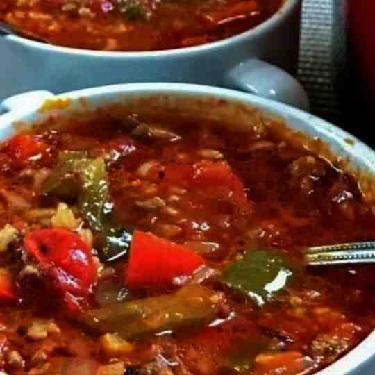 You’ll love the comforting flavors this soup and how all the flavors blend together. The peppers so tomatoes provide a sweety and flavor while beef infuses with that flavor that will remind you traditional stuf peppers.